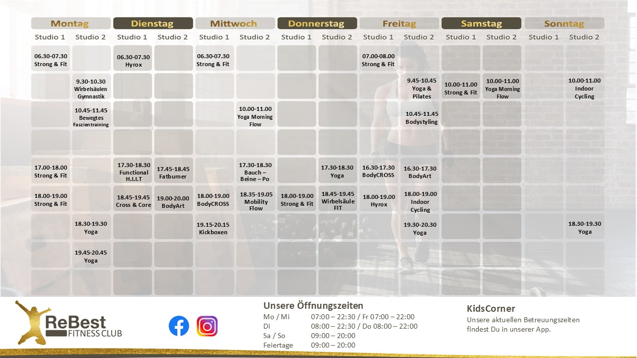 Gültig ab 25.11.2025 - kurzfristige Änderungen werden direkt im Fitness Club sowie auf Facebook und Instagram bekanntgegeben.